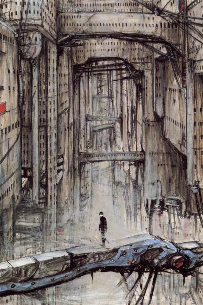 I fell down the Blame hole again as I seem to do about once a year over the last three years. I originally read the manga back in July of 2020 during, what was for me, the worst period of the pandemic. I had largely enjoyed the months of May and June but July was when I had to make some radical shifts in direction when it came to my personal life and health. I won’t go into detail but suffice to say it was a fairly uncomfortable period both physically and mentally which is why Blame was probably the absolute worst thing I could have read. That being said it eventually became one of my favorite non-gay manga and every time I start the first chapter I immediately get yanked in headlong towards the fleshy, mechanical center of a truly unique piece of art. In loose terms the manga is about an unfathomably large city built out in a radius around earth that has become rampant and expands chaotically due to a convoluted struggle between ancient humans on earth and an afflicted computer interface that they once controlled. The main character is a mysterious human (but not really) who is searching endlessly and ceaselessly for any remaining humans who possess the proper genetic material to mend the schism that is basically ruining all the fun for everyone everywhere. The structure they all have to traverse is later revealed to occupy most of the solar system and each area is built with complete disregard to any type of habitability or coherence.